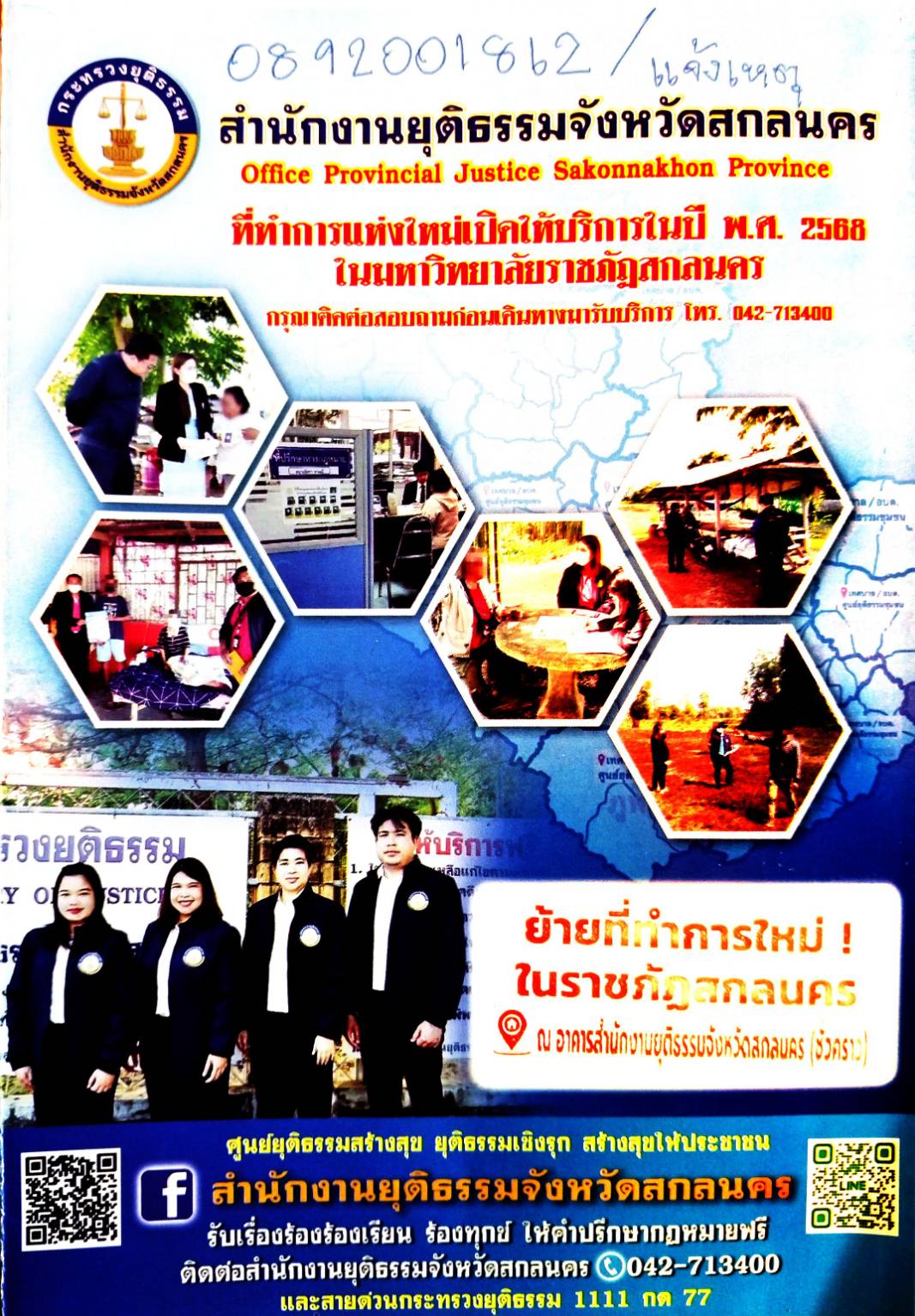 ขั้นตอนการให้บริการของสำนักงานยุติธรรมจังหวัดสกลนคร