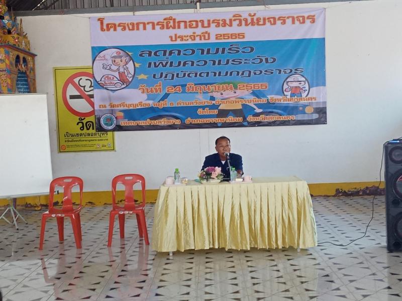 วันที่ 24 มิถุนายน 2565 นายสมคิด จันทร์มาลา นายกเทศมนตรีตำบลวังยาง เป็นประธานพิธีเปิดโครงการฝึกอบรมวินัยจราจร ประจำปี 2565 ณ วัดศรีบุญเรือง หมู่ที่ 6 ตำบลวังยาง อำเภอพรรณานิคม จังหวัดสกลนคร (11 ภาพ)
